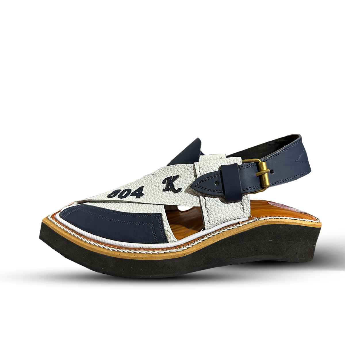 Qadi 804 Handmade Peshwari Blue And White Chappal 👑