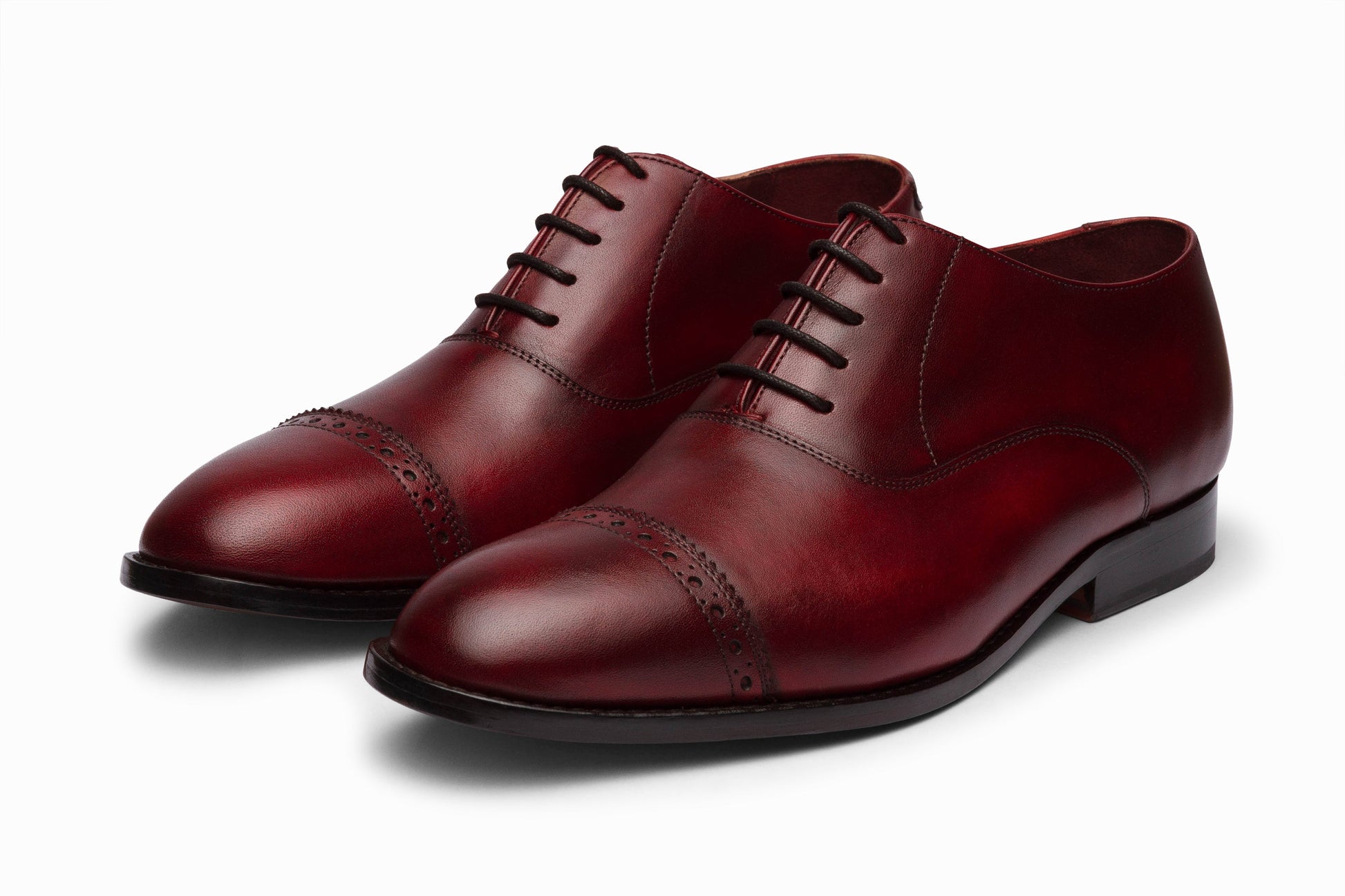 Leather Quarter Brogue Oxford with Brogue Punchline on toe features Hand Built Argentinean Leather Sole, Dark Oxblood Calfskin Leather and Oxblood Leather Lining.