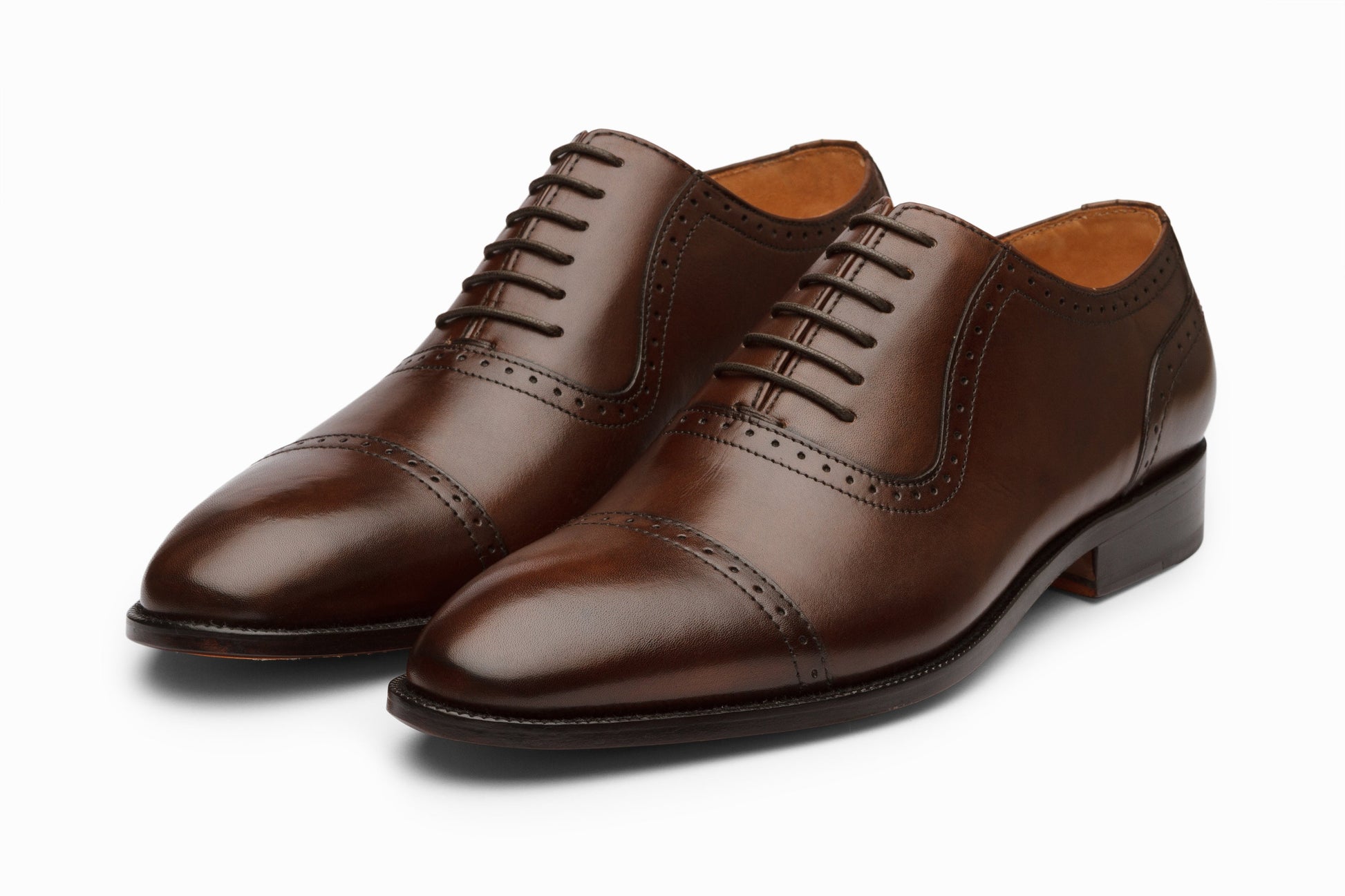 Handmade Leather Oxford, High-Grade Rubber Sole, Burnished Cognac Calfskin Leather and Rich Tan Leather Lining.