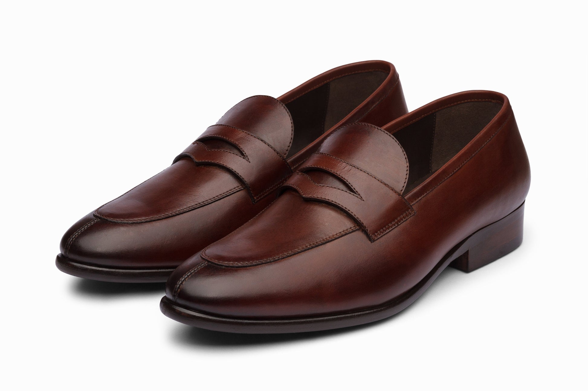 Handmade Penny Loafer features Split Toe Styling, High-Grade Rubber Sole, Brown Calfskin Leather and Brown Leather Lining.
