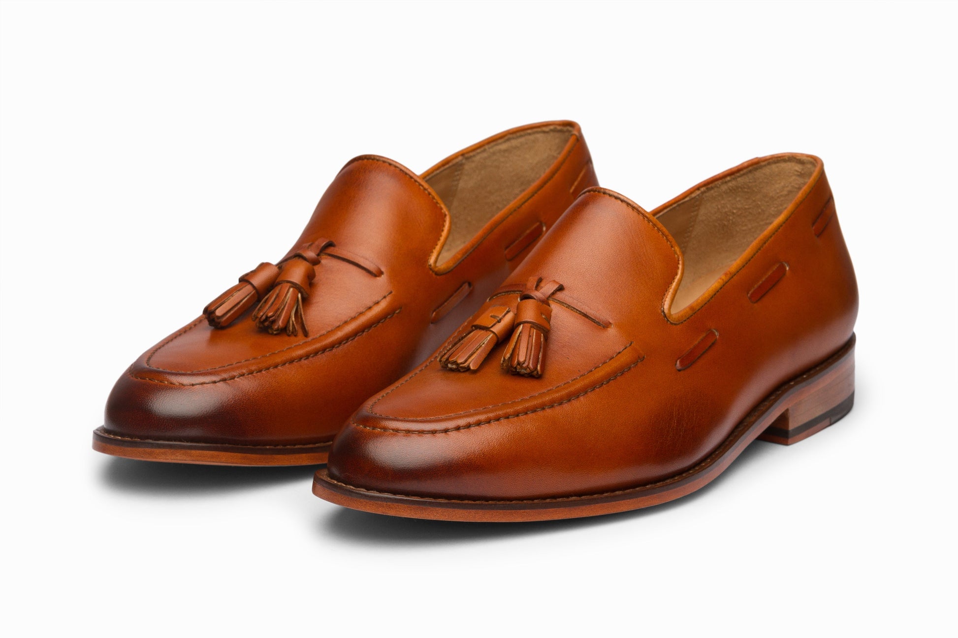 Handmade Tassel Loafer features High-Grade Rubber Sole, Tan Calfskin Leather, and Rich Tan Leather Lining.